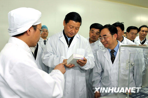 4月20日至23日,中共中央政治局常委、中央书记处书记、国家副主席习近平在江苏调研。这是4月20日,习近平在江苏恒瑞医药股份有限公司调研。新华社记者 饶爱民 摄