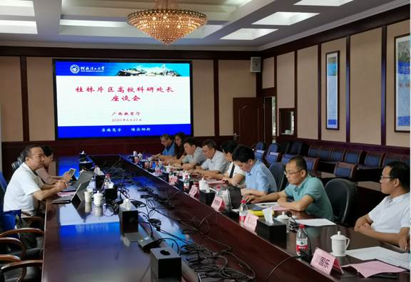 6月23日下午,自治区教育厅科研处处长黄青云一行两人在我校举办桂北片区新形势下高校科研管理工作调研座谈会,王玫副校长、桂北片区各高校科研处相关负责同志、我校科技处相关工作人员参加了会议。
