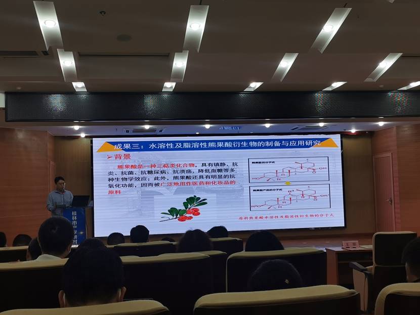 会上,参会的高校院所及部分企业围绕技术需求、科研成果、项目合作等进行发言,我校化学与生物工程学院副院长刘勇平教授介绍了科技成果转化的基本情况并推介了相关的科研成果。科研专家李海云教授与桂林市三棱生物科技有限公司签订了合作项目。
