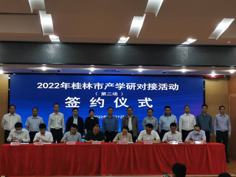 为加强产学研合作,引领企业技术创新,提高企业核心竞争力,加速产业链和创新链双向融合,促进产业高质量发展,4月27日,由市科技局、市工业和信息化局、桂林高新技术产业开发区管理委员会桂林市产学研对接活动在桂林国家高新区创意大厦隆重举行。本次活动聚焦大健康产业,促进产学研发展和科技成果转移转化。我校周国清副校长出席活动,学校科技处及相关产业的科研专家代表参加活动。