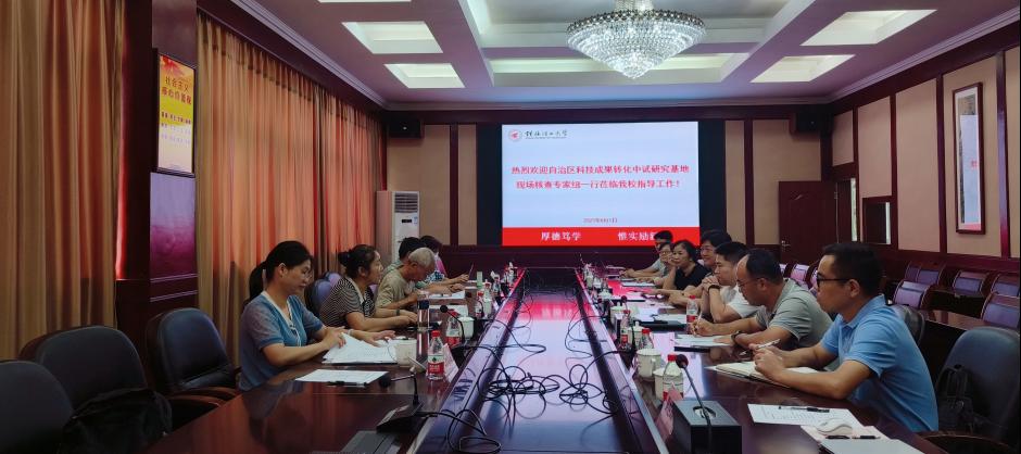 8月1日上午,自治区科技成果转化中试研究基地专家组一行5人到我校开展现场核查工作。我校党委常委、副校长王玫在屏风校区教8楼3楼会议室接待了专家组,中试研究基地主任、科技处负责人及相关工作人员参加会议。