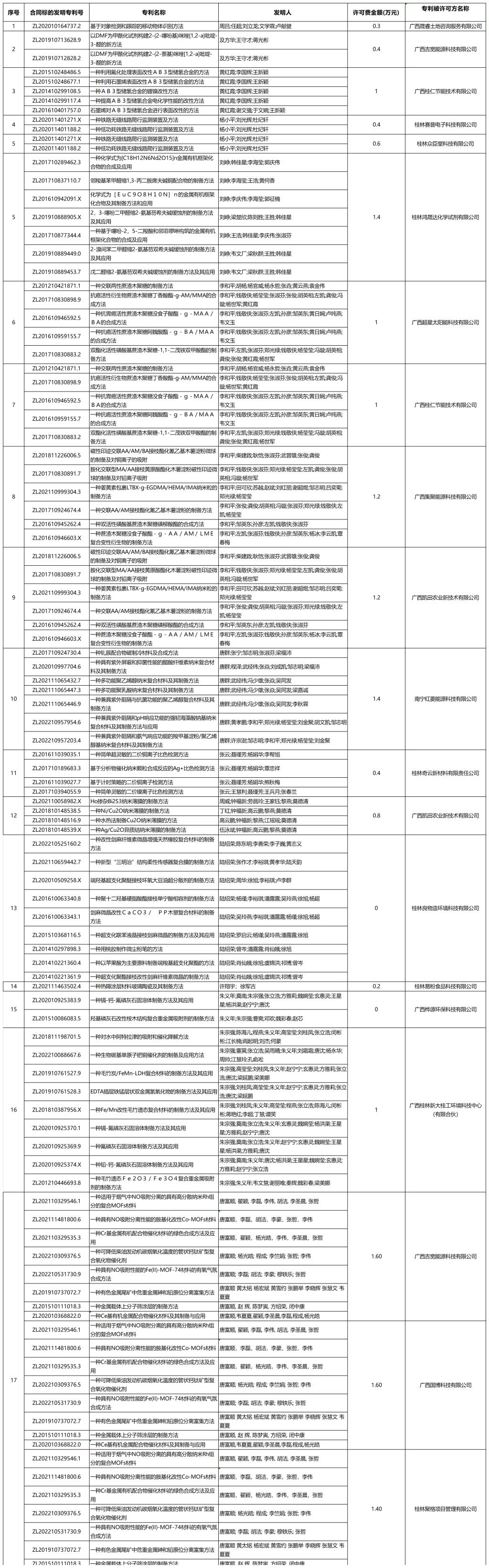 附件:专利许可清单